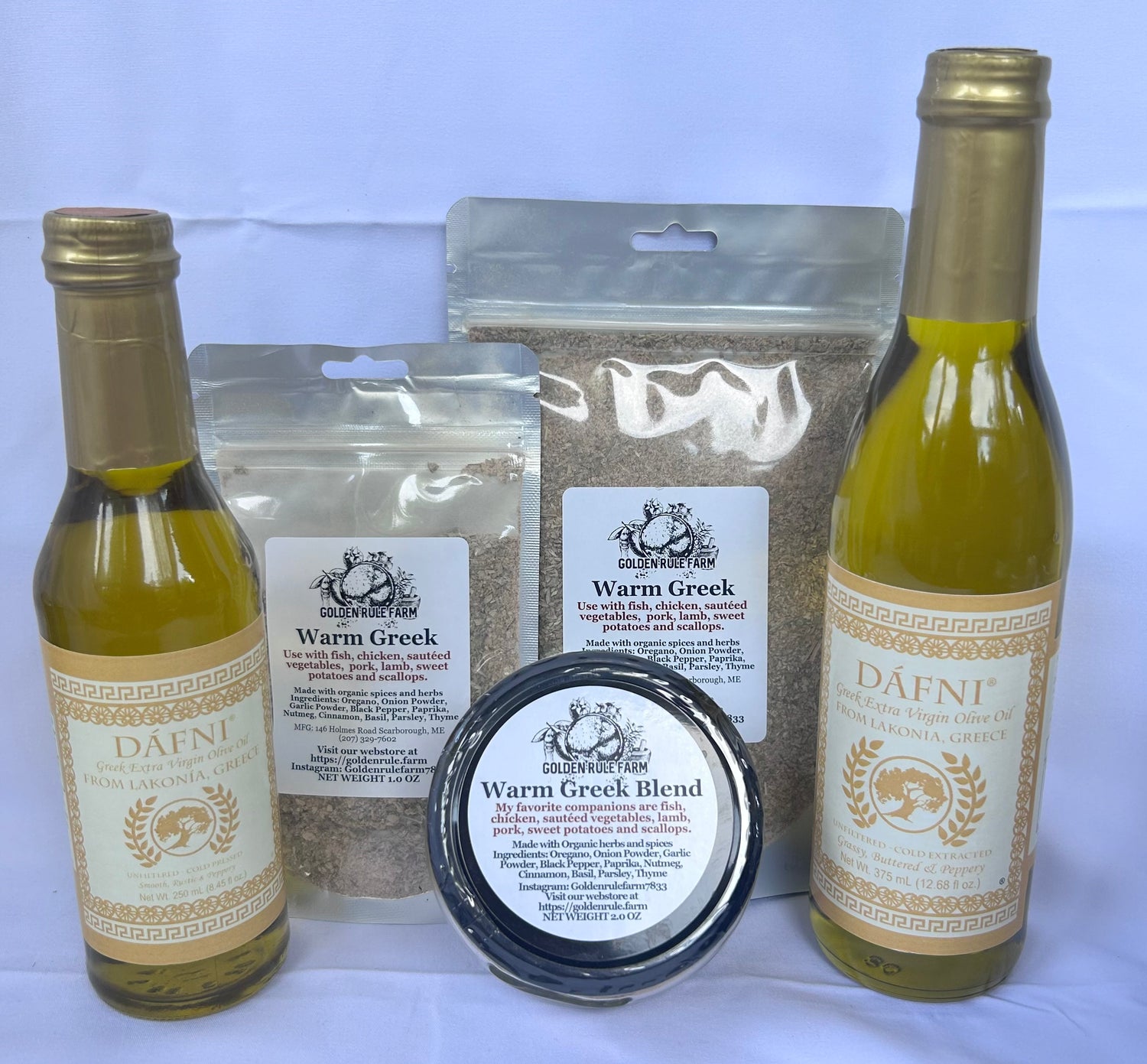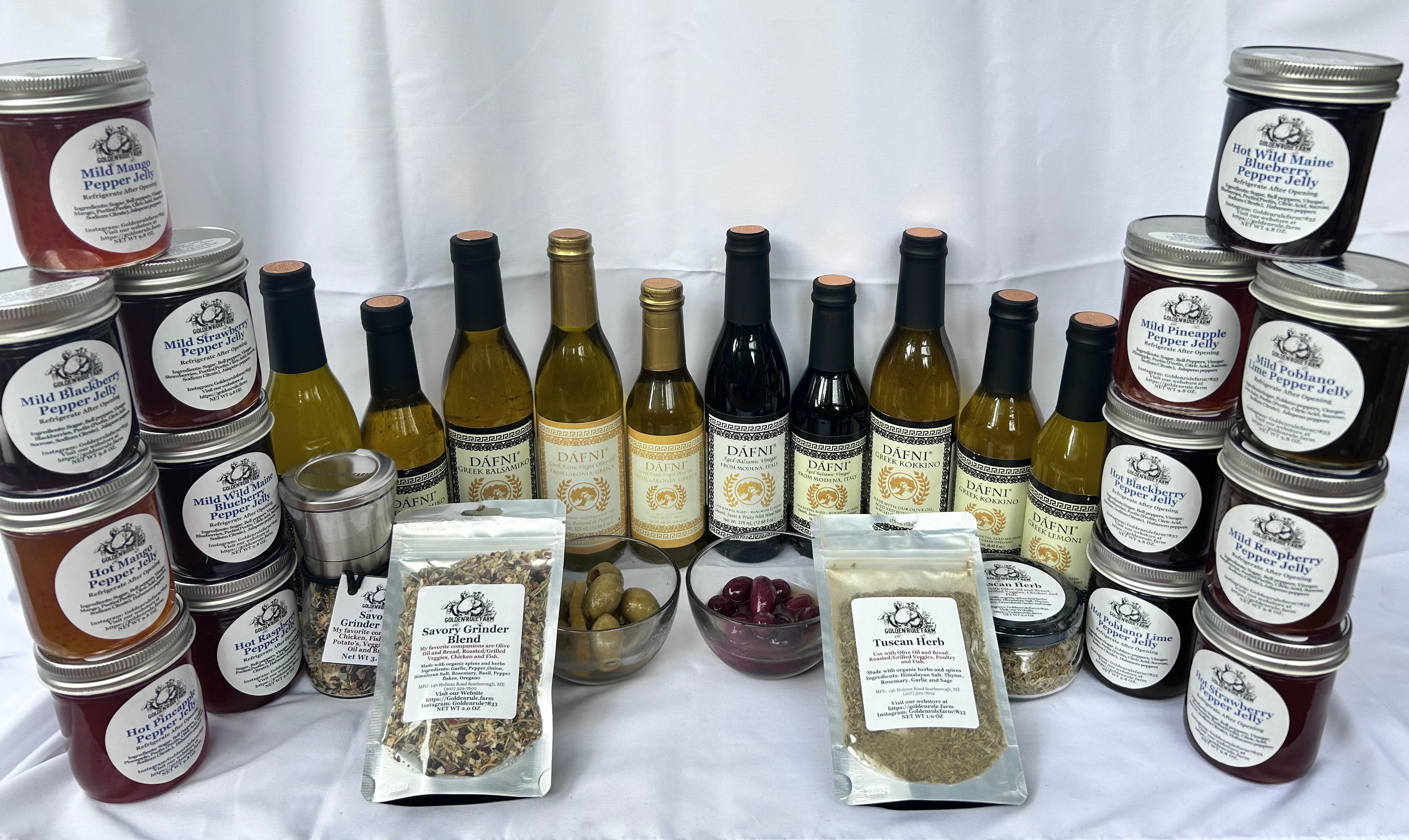 Golden Rule Gourmet Foods has always been guided by a love of flavor, quality, and tradition. From our shop in Maine, we craft pepper jellies, spice blends, and seasonal favorites with care and dedication. In 2025, we proudly welcomed DÁFNI Greek Products into our family, bringing with them the rich heritage of southern Greece — from award-winning olive oils and aged balsamic vinegars to herbal blends passed down for generations.